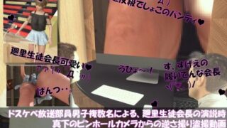 同人新作 【●100▲100】ドスケベ放送部員男子複数名による、廻里生徒会長の演説時真下のピンホールカメラからの逆さ撮り盗撮動画ライブ鑑賞の様子(Vol.006:私服演説で盗撮されたフルバックパンティ) d_678355【全編ダウンロード】
