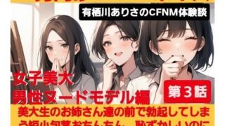 同人新作 M男向けCFNMボイス 有栖川ありさのCFNM体験談 男性ヌードモデル編 【第3話】 恥ずかしい短小包茎を描かれちゃう童貞君。女子大生のお姉さん達の目の前でチンポが勃起してしまい…! d_675654【全編ダウンロード】