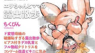 変態露出母娘、エリちゃんとママの露出散歩!今日はパパ発案のコンドーム乳首隠しを着けて、ママがド変態露出を決行!路上飲みのおじさん達を相手に、ピアス付きデカ乳首を好きなだけ弄ってもらう!いやらしい格好を視姦されるだけで興奮していってしまう変態露出奴●を描いていますので、絡み、性交シーンは一切ありません。見られて喜ぶ淫乱奴●の様子をしつこく描いていますので、そういうのがお好きな方、ぜひお楽しみください。表紙込みコミック29ページ全ページフルカラー