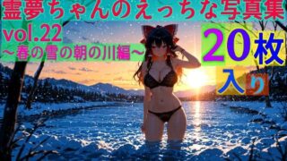 【東方Project同人】 霊夢ちゃんのえっちな写真集vol.25〜春の雪の夜の川編〜 d_606731【フル版ダウンロード】 春の雪の夜の川で撮影された、博麗霊夢さんのえっちな写真集第25弾です。※本作品にはAIで出力したイラスト作品が23枚(本編11枚+オフショット12枚)収録されています。よろしくお願いいたします。使用したAIイラスト生成サイト:PixAI.Arttwitter(X)をやっています。こちらもよろしくお願いいたします。@yaroichisan 2026.02.24