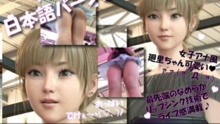 <3DCGによるシチュエーションムービーです。動画1本>廻里はWEBラジオのパーソナリティを持っています。Xなどから寄せられた自分宛てのエッチな質問に答えたり、グラドル&声優としての体験談を赤裸々に語るという番組で、さらにその収録の様子が彼女を360°どこからでもどんなアングルでも撮影できるドローンカメラが舐めるように動画で撮っているという、フェチには堪らない内容となっております。今回は、ニュースキャスター風のシーンでの風チラの様子です。